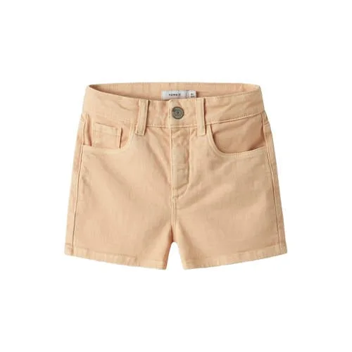 Vrolijk elke dag op met deze lichtoranje korte broek voor meisjes van NAME IT. De casual shorts heeft een frisse, effen kleur en een tijdloze vijf-pocketstijl, handig voor school, spelen en alles daartussenin. De geweven stof van katoen met een beetje stretch voelt zacht aan en beweegt gemakkelijk met je kind mee.Waarom deze korte broek praktisch is Comfortabele stof: gemaakt van katoen met stretch voor een soepele pasvorm en fijne bewegingsvrijheid. Verstelbare taille: dankzij de verstelbare band groeit de broek een stukje met je kind mee. Praktische sluiting: rits- en haaksluiting zodat de broek stevig blijft zitten. Vijf-pocketmodel: twee steekzakken, een muntzakje en achterzakken voor kleine spulletjes. Lichtoranje kleur: makkelijk te combineren met T-shirts, tops en sneakers. Onderhoudsvriendelijk: wasbaar op 40 graden en warm strijkbaar.Praktisch voor school en vrije tijdDeze NKFROSE shorts is gemaakt voor dagelijks gebruik. Geschikt voor schooldagen met een T-shirt en gympen, maar ook handig voor een vrije dag in het park of op vakantie. De normale pasvorm en het verstelbare taillelint zorgen ervoor dat de broek prettig zit tijdens rennen, fietsen en spelen.NAME IT KIDS: praktische kinderkledingNAME IT KIDS ontwerpt kleding speciaal voor kinderen, met aandacht voor pasvorm, draagcomfort en herkenbare stijlen. De collecties sluiten aan op het dagelijkse leven van schoolkinderen en tieners, zodat ze zich vrij kunnen bewegen en zichzelf kunnen zijn in kleding die comfortabel zit en er eigentijds uitziet.Een frisse, comfortabele basisshort die je kind het hele seizoen kan dragen.