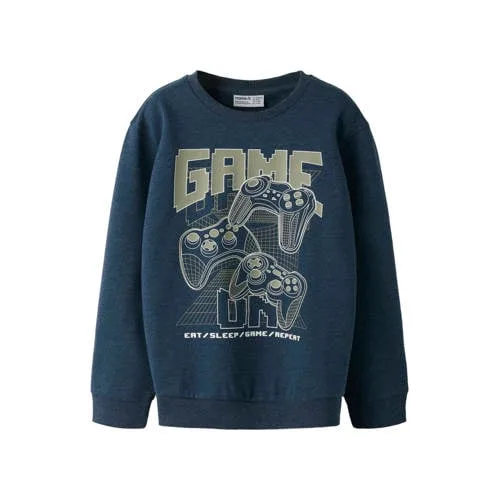 Voor elke schooldag, speelafspraak of relaxte middag thuis is deze NAME IT sweater voor jongens een praktische basic in de kledingkast. De donkerblauwe trui heeft een neutrale kleur, lange mouwen en een ronde hals, waardoor hij makkelijk combineert met een jeans, jogger of cargobroek. De zachte sweatstof met katoen voelt prettig aan op de huid en is geschikt voor zowel schoolkinderen als tieners.Comfortabele sweater voor elke dag Donkerblauwe kleur die eenvoudig te combineren is met verschillende broeken en schoenen Gemaakt van zachte sweatstof met katoen voor een prettig draaggevoel Lange mouwen en ronde hals voor extra warmte op frisse dagen Geribde boorden aan mouwen, hals en onderkant voor een goede pasvorm Printopdruk geeft de trui een casual uitstraling Valt normaal volgens het maatadvies, kiezen van de gebruikelijke maat is voldoende Onderhoudsvriendelijk: handwas, niet strijken en niet in de droogtrommelIdeaal voor school, sport en thuisDeze sweater uit de 'Daily' collectie sluit goed aan op de drukke weken van je kind. Draag hem snel over een T-shirt voor naar school of sporttraining en combineer hem in het weekend met een comfortabele jogger. De trui beweegt soepel mee, zodat spelen, rennen en fietsen geen probleem is.NAME IT KIDS: vertrouwde kindermodeNAME IT KIDS ontwerpt kinderkleding met oog voor pasvorm, draagcomfort en dagelijkse praktische details. De stijl is modern en afgestemd op wat kinderen zelf graag dragen, zodat je kiest voor kleding die goed past bij het actieve leven van je kind.Een comfortabele, dagelijkse sweater waar je kind graag naar zal grijpen.