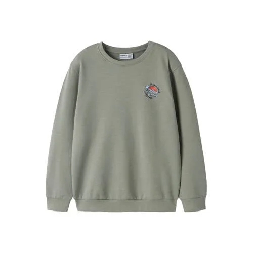 De grijsgroene NAME IT jongens sweater NKMVALEXANDER is een praktische basic voor elke dag. De zachte sweatstof voelt comfortabel aan op de huid, terwijl de printopdruk zorgt voor een speels detail. De sweater heeft een ronde hals en lange mouwen en combineert eenvoudig met een jeans of joggingbroek. Het model valt normaal, waardoor je de gebruikelijke maat van je kind kunt kiezen.Comfortabele sweater voor school en vrije tijd Zachte sweatstof die de hele dag prettig aanvoelt Grijsgroene kleur met printopdruk voor een rustige, grafische uitstraling Ronde hals en lange mouwen, geschikt voor het tussenseizoen en frisse dagen Geribde boorden langs hals, mouwen en zoom voor een stabiele pasvorm Gemaakt van katoen met een soepel draagcomfort Valt normaal, waardoor de gebruikelijke maat volstaat Geschikt voor schoolkinderen en tieners uit de Daily collectie Geen zakken voor een rustig en clean ontwerpPraktische verzorging voor dagelijks gebruikDe sweater kan met de hand worden gewassen en blijft het mooist wanneer hij niet in de droogtrommel gaat. Strijken is niet nodig, wat het onderhoud eenvoudig maakt.NAME IT KIDS voor dagelijkse kinderkledingNAME IT KIDS maakt kinderkleding met aandacht voor draaggemak en een moderne uitstraling. De ontwerpen sluiten aan bij het actieve leven van kinderen en zijn makkelijk te combineren met andere favorieten in de kast.Een sweater die klaar is voor drukke schooldagen en ontspannen middagen thuis.