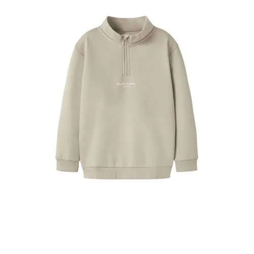 Deze NAME IT KIDS sweater heeft een lange mouw en een opstaande kraag. De halve rits maakt het makkelijk aan en uit doen, de geribde boorden zorgen voor een goede pasvorm.