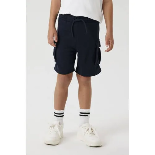 Deze donkerblauwe jongens cargo sweatshort van NAME IT KIDS is praktisch en comfortabel. De elastische tailleband met koord zorgt voor een goede pasvorm. Met zakken voor en cargozakken heeft hij genoeg opbergruimte voor alle avonturen. Gemaakt van katoen en polyester.