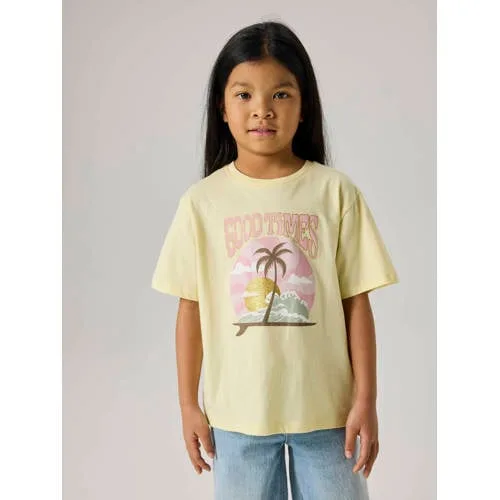 Met dit vrolijke NAME IT T-shirt voor meisjes voeg je makkelijk kleur toe aan de dagelijkse outfits van je kind. Het gele shirt heeft een speelse printopdruk aan de voorkant en past goed bij zowel een jeans als een korte broek. Gemaakt van 100% katoen voelt de stof zacht en soepel aan op de huid, ideaal voor schooldagen en vrije tijd.Fijne pasvorm voor elke dag Korte mouwen en rechte mouwinzet voor bewegingsvrijheid tijdens spelen en sporten Ronde hals die comfortabel aansluit zonder te strak te zitten Gemaakt van 100% katoen voor een zachte touch en prettig draagcomfort Heldere gele kleur die makkelijk te combineren is met basic items Geschikt voor schoolkind en tiener, binnen de dagelijkse collectie van NAME IT Maatadvies: valt normaal, je kunt de gebruikelijke maat aanhouden Praktische verzorging: handwas, niet strijken en niet in de droogtrommelVoor school, thuis en daarbuitenDit T-shirt uit de 'Daily' collectie is ontworpen voor alles wat een gewone dag brengt. Naar school met een spijkerbroek en sneakers, of in het weekend met een luchtige short, het shirt geeft elke outfit een frisse en opgewekte uitstraling.Over NAME ITNAME IT maakt kinderkleding met aandacht voor pasvorm, comfort en een eigentijdse look. De collecties sluiten aan op het dagelijks leven van kinderen, met kleuren en prints die meegaan met hun wereld. Zo kies je voor kleding waar kinderen zich de hele dag prettig in voelen.Een kleurig T-shirt dat elke dag weer uit de kast gepakt kan worden.