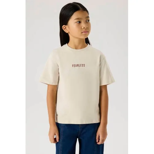 Dit beige NAME IT T-shirt voor meisjes is een praktische basic met een subtiel detail. Aan de voorkant oogt het rustig en gemakkelijk te combineren, terwijl de backprint met tekst zorgt voor een verrassend accent zodra je meisje zich omdraait. Het T-shirt heeft een regular fit en valt volgens de maat, waardoor kiezen een stuk eenvoudiger wordt.Details die elke dag kloppen Regular fit, sluit comfortabel aan zonder strak te zitten Korte, rechte mouwen voor veel bewegingsvrijheid Ronde hals die zacht langs de halslijn valt Gemaakt van 100% katoen, voelt soepel en aangenaam op de huid Backprint met tekst op de achterkant als grafisch detail Rustige beige kleur, makkelijk te combineren met jeans, rok of short Eén T-shirt per verpakkingVoor schooldagen, speelafspraken en weekendOf het nu gaat om een schooldag, een middag buitenspelen of een ontspannen weekend, dit T-shirt past zich moeiteloos aan. Het katoen voelt luchtig aan op warme dagen en laat zich in koudere maanden eenvoudig onder een vest of hoodie dragen.NAME IT KIDS: gemaakt met oog voor kinderenNAME IT KIDS richt zich op kleding waarin kinderen zich vrij kunnen bewegen en zichzelf kunnen zijn. De ontwerpen volgen de trends, maar blijven praktisch voor alledaags gebruik. Zo kies je met dit T-shirt voor een vertrouwd merk dat rekening houdt met kinderlijke energie en comfort.Een T-shirt dat op veel momenten uit de kast gepakt kan worden.