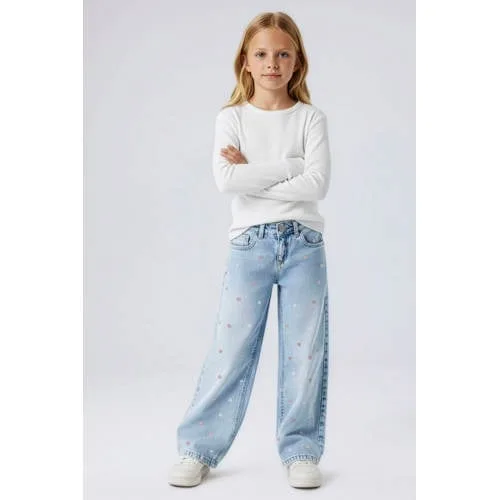 NAME IT KIDS wide leg jeans met hartjes light blue denim