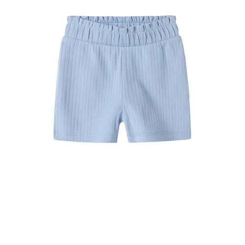 De NAME IT MINI NMFSURAJALI korte broek is perfect voor meisjes. Deze lichtblauwe casual shorts hebben een elastische tailleband en zijn gemaakt van katoen met elastaan. Dankzij de verstelbare taille bieden ze een comfortabele pasvorm.