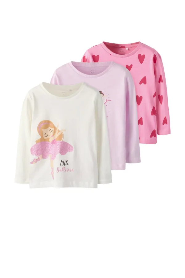 NAME IT MINI longsleeve NMFNIA – set van 3 roze/lichtroze/wit