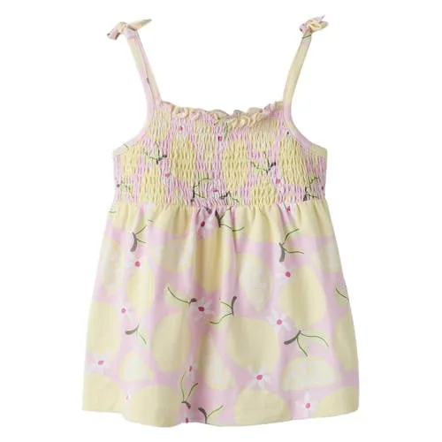 Deze lichtroze meisjes top met spaghettibandjes van NAME IT MINI is een luchtige basic voor elke dag. De zachte tinten lichtroze en lichtgeel, samen met de all over print, geven een speelse uitstraling. Dankzij het soepele stretchmateriaal met 95% katoen en 5% elastaan beweegt je kind makkelijk mee tijdens spelen, rennen en ontdekken.Lichte top met vrolijke details Gemaakt van 95% katoen en 5% elastaan voor een zachte, rekbare feel Spaghettibandjes en mouwloos model voor extra luchtigheid Vierkante hals voor een moderne, speelse look Smockwerk zorgt voor een comfortabele, aansluitende pasvorm All over print in lichtroze/lichtgeel voor een frisse, zomerse uitstraling Co-ord set: er zijn bijpassende items in dezelfde stijl in de collectie Zonder sluiting, zodat de top gemakkelijk aan en uit gaat Maatadvies: dit artikel valt normaalIdeaal voor zonnige dagenDeze top uit de Daily collectie is geschikt voor baby, peuter, kleuter en schoolkind. Fijn op een warme dag met een korte broek of rok, en op koelere momenten met een dun vest erover. Wassen kan met de hand, daarna aan de lijn laten drogen. Strijken en drogen in de droogtrommel wordt afgeraden.NAME IT MINI voor de allerkleinstenNAME IT MINI richt zich op de kleinste maten, met comfortabele kleding die rekening houdt met veel bewegen en spelen. Zachte materialen, doordachte pasvormen en kinderlijke prints staan centraal, zodat je kind zich vrij kan voelen in elke outfit.Een lichte, vrolijke top die moeiteloos meegaat in het ritme van alledag.