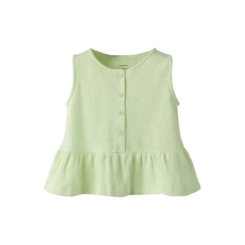 Deze limegroene mouwloze top voor meisjes van NAME IT MINI is een basic voor elke dag in een frisse kleur. De top heeft een peplumzoom met volant, waardoor hij net even wat meer uitstraling krijgt. De subtiele textuur in de stof zorgt voor een rustige, gestructureerde uitstraling, geschikt voor dagelijkse outfits naar school, opvang of een familiedag.Zachte stof en speelse details Gemaakt van 98% katoen en 2% elastaan voor een zachte stof met lichte stretch Mouwloos model, prettig op warme dagen en makkelijk te combineren met een vest of jasje Ronde hals met knoopsluiting op de rug voor makkelijk aan- en uittrekken Peplum met volant voor een zwierig effect bij elke stap Effen limegroene kleur die veel kinderkleuren in de garderobe aanvult Valt normaal volgens het maatadvies, handig bij het kiezen van de juiste maat Geschikt voor baby, peuter, kleuter en schoolkind binnen de daily collectie Onderhoudsvriendelijk: niet strijken en niet drogen in de droogtrommelElke dag makkelijk combinerenDe limegroene top past goed bij een korte broek, een luchtige rok of een comfortabele jeans. Door het mouwloze model is hij fijn op warme dagen, met op frissere momenten een vest eroverheen.Vertrouwde stijl van NAME IT MININAME IT MINI ontwerpt kinderkleding met aandacht voor draaggemak, herkenbare kleuren en praktische details. De pasvorm sluit aan bij de dagelijkse avonturen van kinderen, zodat zij vrij kunnen bewegen en spelen.Een speelse top die elke dag weer uit de kast gepakt kan worden.