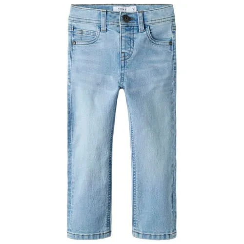 Voor elke dag en toch helemaal van nu, deze NAME IT NMMSILAS slim fit jeans voor jongens is een fijne basis in de kledingkast. De lichtblauwe wassing past makkelijk bij T-shirts, truien en sneakers en geeft elke outfit een frisse, casual uitstraling. Dankzij de slim fit sluit de broek mooi aan zonder strak te voelen, ideaal voor jongens die graag bewegen.Comfortabele slim fit in light blue denim Slim fit jeans in light blue denim voor een moderne, aansluitende look Gemaakt van 78% katoen, 21% polyester en 1% elastaan voor een zachte stof met lichte stretch Rits- en drukknoopsluiting waardoor de broek makkelijk aan en uit gaat Klassieke 5-pocket stijl met twee achterzakken, twee steekzakken en een muntzakje Effen denim zonder print, eenvoudig te combineren met allerlei kleuren en prints Onderdeel van de NAME IT MINI lijn, afgestemd op de pasvorm van jongere jongensIdeaal voor school, spelen en visiteDeze jeans is geschikt voor vrijwel elke dag. Naar school, een middag buitenspelen of een verjaardag, de lichte stretch zorgt voor voldoende bewegingsvrijheid. De lichtblauwe kleur oogt speels en blijft toch rustig, waardoor de broek handig is als vaste favoriet.NAME IT, denim voor elke dagNAME IT maakt kinderkleding met aandacht voor een goede pasvorm en praktische details. De MINI collectie is speciaal ontworpen voor jonge kinderen, met materialen die prettig aanvoelen en modellen die tegen een actieve dag kunnen.Een veelzijdige jeans waar je kind zich vrij in kan bewegen en er elke dag verzorgd uitziet.