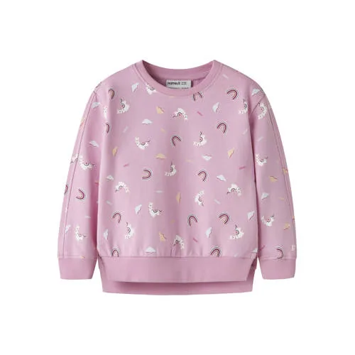 Deze NAME IT MINI meisjes sweater NMFBISSINE is een praktische basic voor elke dag, met een speelse all over print die direct opvalt. De sweater is gemaakt van 100% katoen, voelt zacht aan op de huid en is daardoor geschikt voor lange schooldagen, speeltijd en relaxmomenten thuis. Dankzij de regular fit en de ronde hals zit de trui comfortabel zonder te strak te vallen.Praktische details voor elke dag Gemaakt van 100% katoen, zacht op de huid tijdens het dragen Regular fit, ideaal als laagje over een T-shirt of hemd All over print voor een vrolijke en speelse uitstraling Geribde boorden langs hals, mouwen en onderkant voor een mooie aansluiting Lange, rechte mouwen die voldoende bewegingsvrijheid geven Zonder zakken, waardoor de look rustig en clean blijft Maatadvies: valt normaalFijne trui voor school, thuis en onderwegDe sweater is makkelijk te combineren met een jeans, legging of rok. Ideaal voor laagjes, bijvoorbeeld met een longsleeve eronder op koudere dagen of los op een mildere dag.NAME IT MINI voor de kleintjesNAME IT MINI richt zich op comfortabele kinderkleding met doordachte pasvormen en zachte materialen. De ontwerpen zijn speels en praktisch, zodat kinderen zorgeloos kunnen bewegen en spelen.Een zachte, vrolijke sweater die moeiteloos meedraait in het dagelijks leven van je kind.