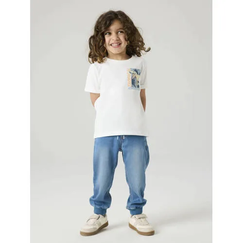 Een praktische basic voor elke dag, dit NAME IT jongens T-shirt uit de NAME IT MINI lijn. Het rechtvallende model met ronde hals en korte mouwen geeft veel bewegingsvrijheid tijdens spelen, sporten en naar school gaan. De printopdruk aan de voorkant zorgt voor een opvallende uitstraling en maakt het T-shirt makkelijk te combineren met jeans, shorts of joggers.Comfortabel shirt met stoere print Rechtvallende pasvorm die niet knelt en prettig om het lichaam valt Korte mouwen, ideaal voor warmere dagen of onder een vest of trui Ronde hals die soepel meebeweegt en gemakkelijk over het hoofd gaat Gemaakt van 95% katoen en 5% elastaan voor een zachte stof met lichte stretch Printopdruk aan de voorzijde voor een speels effect Geen zakken, zodat het T-shirt glad langs het lichaam valt Een T-shirt per verpakking, handig als aanvulling op de kledingkast Vallend volgens maat, waardoor je eenvoudig je gebruikelijke maat kunt kiezenElke dag draagbaar en makkelijk te combinerenDit T-shirt past goed in de dagelijkse garderobe. Het lichte stretchmateriaal volgt moeiteloos elke beweging, wat praktisch is tijdens buitenspelen of sporten. Door de neutrale basis en opvallende print draag je het shirt net zo makkelijk op een joggingbroek als op een nette broek voor een iets gekledere look.NAME IT MINI: kinderkleding met oog voor gemakNAME IT MINI richt zich op kinderkleding met doordachte pasvormen. Het merk gebruikt soepele stoffen en praktische details die aansluiten op een actieve dag van een kind. Zo ontstaat kleding die comfortabel draagt en geschikt is voor dagelijks gebruik.Een praktisch T-shirt dat al snel een vaste plek in de kledingkast krijgt.