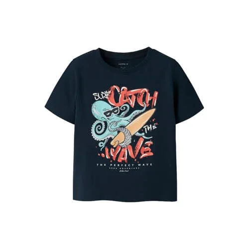 Dit donkerblauwe jongens T-shirt van katoen met stretch van NAME IT MINI is een praktische basic voor elke dag. Het shirt heeft een ronde hals, korte mouwen en een speelse printopdruk die extra kleur en detail aan de outfit geeft. De zachte stof met een beetje stretch beweegt makkelijk mee, zodat je kind de hele dag vrij kan spelen, rennen en ontdekken. Dit model valt normaal, waardoor je gewoon de gebruikelijke maat kunt kiezen.Praktische details voor elke dag Gemaakt van 95% katoen en 5% elastaan voor een zachte stof met comfortabele stretch Donkerblauwe kleur, goed te combineren met jeans, shorts of een jogger Korte mouwen en ronde hals, ideaal voor school en vrije tijd Printopdruk op de voorkant voor een speelse, kinderlijke look Onderdeel van de 'Daily' collectie, perfect voor alledag Wasbaar op 40 graden en warm strijkbaar (2 punten) Niet drogen in de droogtrommel om de pasvorm en print mooi te houdenComfortabel in peuter- en kleutermatenDit T-shirt is speciaal ontworpen voor de maatboog Peuter & Kleuter. De soepele stof en de makkelijke pasvorm maken aankleden eenvoudig en zorgen dat het shirt de hele dag goed blijft zitten, of je kind nu in de zandbak speelt of op ontdekkingstocht gaat.NAME IT voor de allerkleinstenNAME IT MINI richt zich op de kleinste kinderen, met kleding die zacht aanvoelt, comfortabel zit en past bij het dagelijkse leven van actieve peuters en kleuters. De ontwerpen sluiten aan bij de kinderlijke belevingswereld en zijn tegelijkertijd praktisch in gebruik en onderhoud.Een praktische, dagelijkse basic waar je kind zich vrij in kan bewegen en spelen.