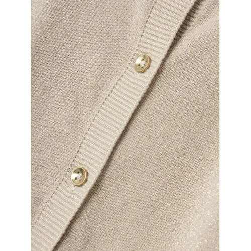 Design: Geribbelde kraag, Rechte zoom, Geribd ceintuurtje; Type sluiting: Knoopsluiting; Materiaal: Knitwear; Halstype: Ronde hals; Motief: Mélange; Details: Ruches; Extra's: Met textuur, Voelt zacht aan; Pasvorm: Normale pasvorm; Armlengte: Lange mouw; Lengte: Normale lengte