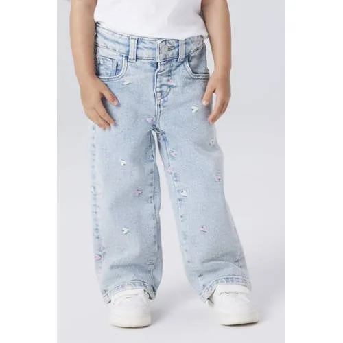 NAME IT MINI wide leg jeans met hartjes light blue denim