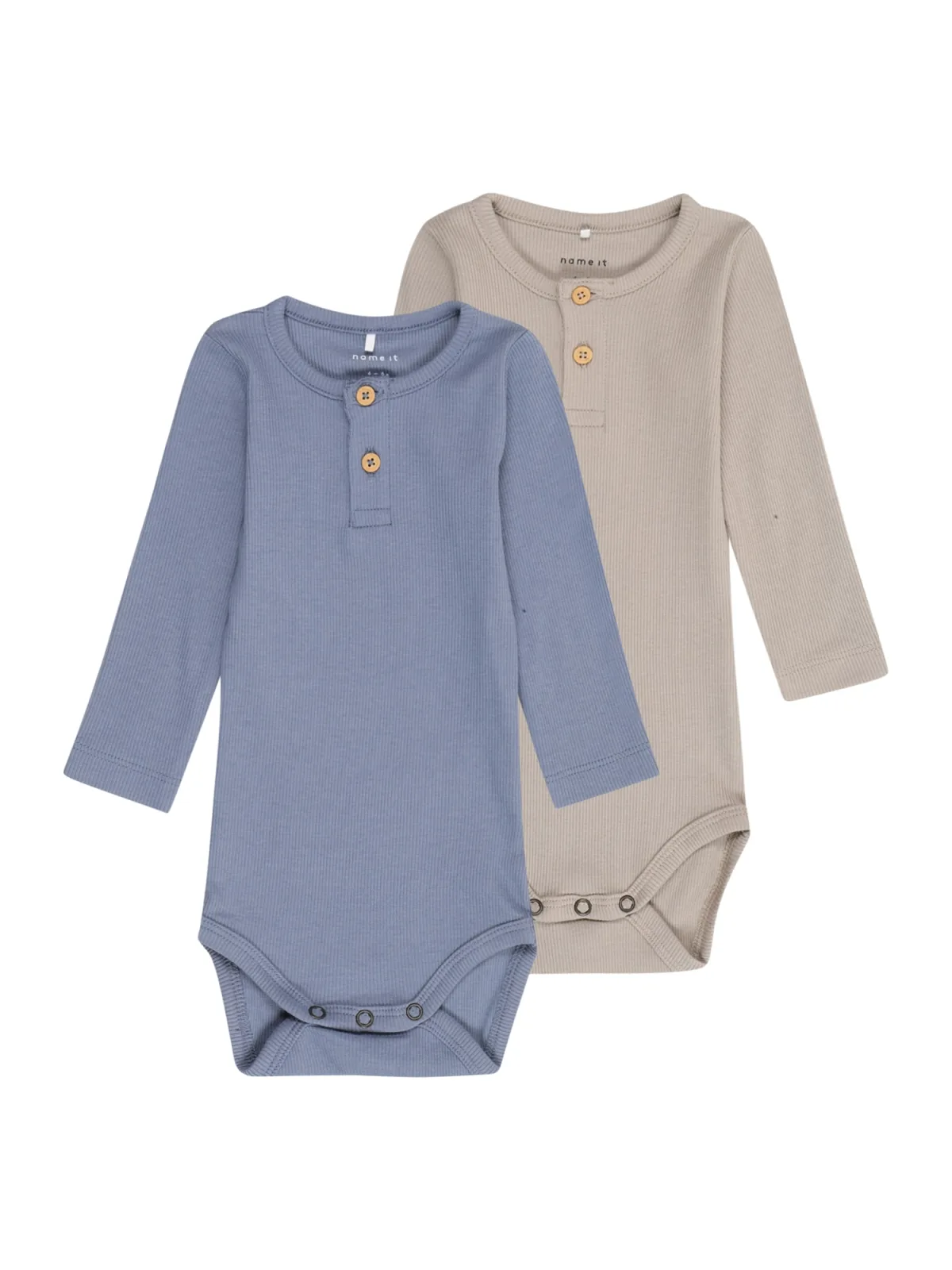 NAME IT Rompertje/body ‘NBMKab’ camel / duifblauw Prijzen