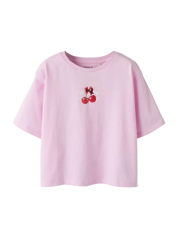 Voor schooldagen, speelafspraken en relaxte weekends is dit lichtroze meisjes T-shirt van NAME IT een praktische basic met een speels accent. De oversized pasvorm geeft een ontspannen look, terwijl de kortere lengte het shirt een moderne uitstraling geeft. Voorop zie je een subtiele printopdruk en op de achterkant een opvallende backprint, waardoor het T-shirt er van alle kanten verzorgd uitziet.Details die het verschil maken Gemaakt van 100% katoen, voelt zacht aan op de huid en is prettig om de hele dag te dragen Lichtroze kleur die makkelijk combineert met jeans, shorts of een rokje Oversized pasvorm met korte lengte voor een moderne, ontspannen look Korte, rechte mouwen en een klassieke ronde hals voor extra draaggemak Printopdruk aan de voorkant en backprint voor een speels en eigentijds detail Geschikt voor schoolkinderen en tieners binnen de dagelijkse collectie Onderhoudsvriendelijk: wasbaar op 40 graden en warm strijkbaarElke dag makkelijk combinerenDit T-shirt maakt het aankleden eenvoudig. Het model valt normaal in de maat en de losse fit geeft genoeg bewegingsvrijheid tijdens spelen, fietsen of chillen op de bank. Draag het op een wijde jeans voor een casual look of op een short voor warme dagen, sneakers eronder en klaar.NAME IT voor actieve kidsNAME IT ontwerpt kinderkleding met het dagelijks leven van kinderen in gedachten. De collecties zitten vol comfortabele basics en trendy items die goed bestand zijn tegen drukke dagen. Met dit T-shirt haal je een praktisch kledingstuk in huis waar je kind graag naar grijpt.Een basic voor elke dag, met net dat beetje extra door de opvallende backprint.