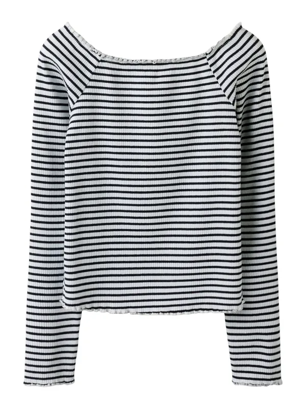Design: Gevoerde zoom/rand, Raglanmouwen, Geribbeld gebreid, Geschulpte zoom; Materiaal: Gerecycled materiaal; Halstype: Carmen hals; Motief: Gestreept; Extra's: All-over patroon, Met textuur, Voelt zacht aan; Pasvorm: Slanke pasvorm; Armlengte: Lange mouw; Lengte: Normale lengte
