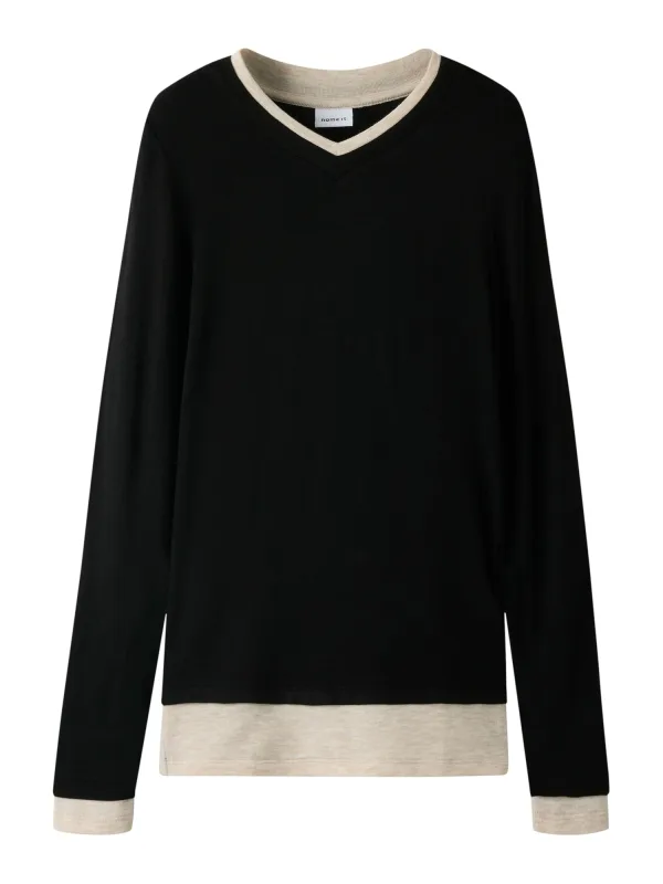 Design: Rechte zoom, Gelaagde look, Contrasterende inserts; Materiaal: Jersey; Halstype: V-hals; Motief: Effen; Extra's: Op staal naden, Voelt zacht aan; Pasvorm: Slanke pasvorm; Armlengte: Lange mouw; Lengte: Normale lengte