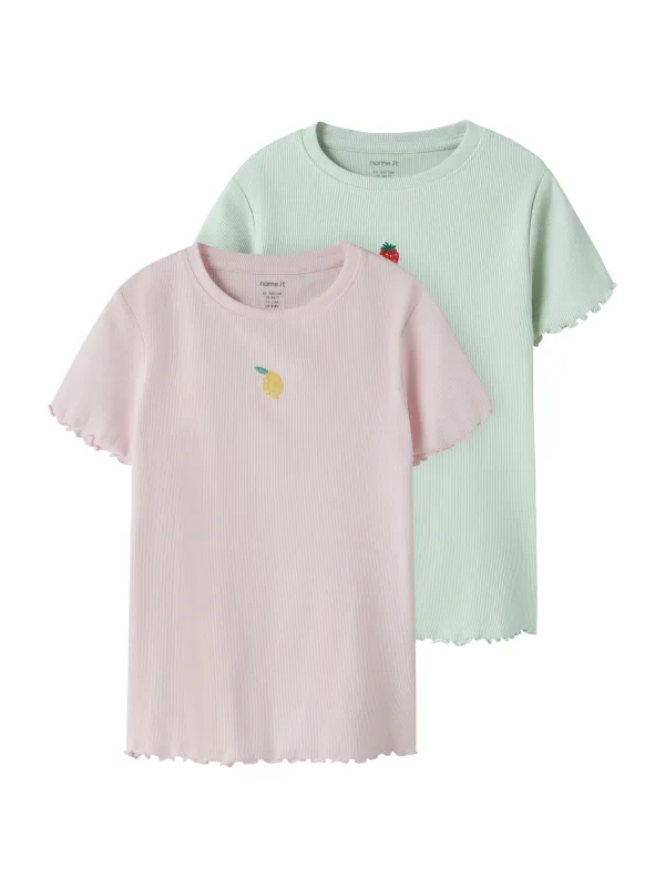 Specificaties: NAME IT Shirt ‘NKFVIVEMMA’ citroen / mintgroen / rosé / donkerrood