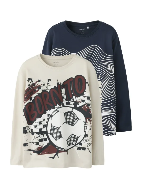 Design: Gevoerde zoom/rand, Geribbelde kraag; Materiaal: Jersey; Halstype: Ronde hals; Motief: Motiefprint; Extra's: Voelt zacht aan, Huidvriendelijk materiaal; Pasvorm: Normale pasvorm; Aantal: 2 Pack; Armlengte: Lange mouw