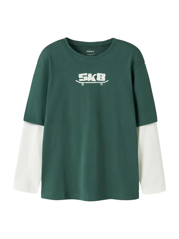 Specificaties: NAME IT Shirt ‘NKMVARTO’ donkergroen / wit