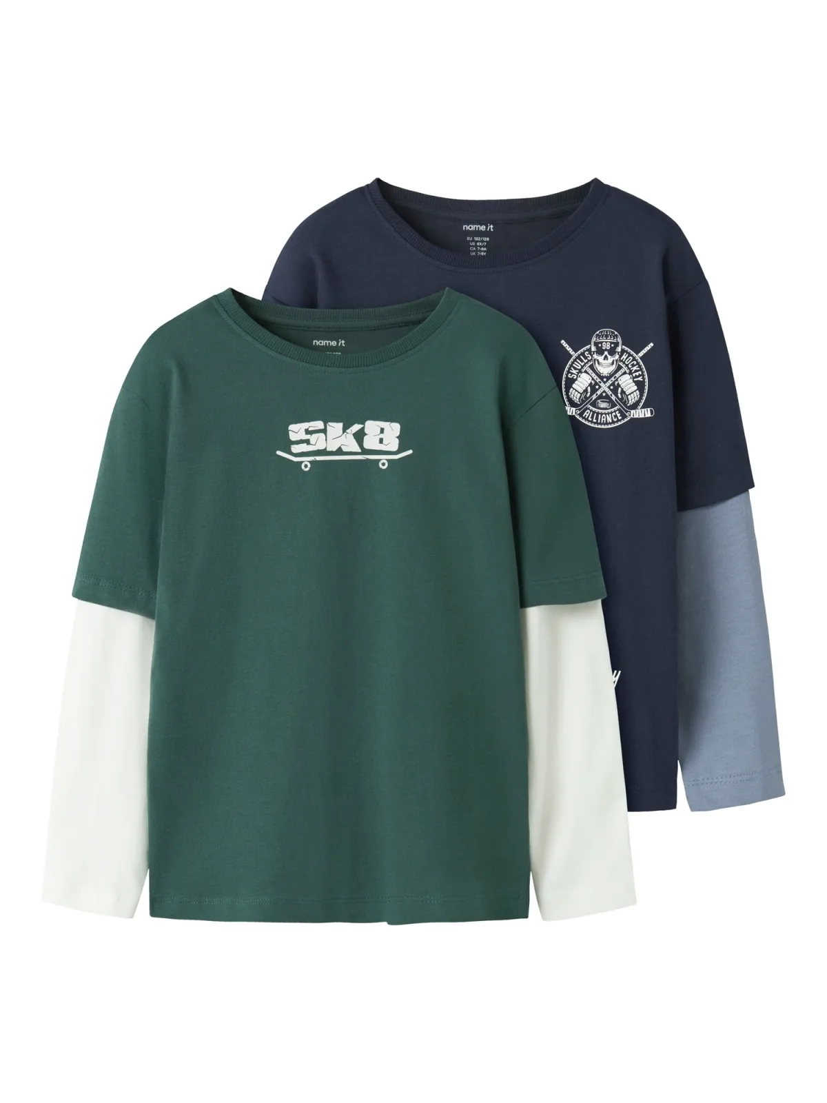 Design: Gevoerde zoom/rand, Gelaagde look, Nektape; Materiaal: Jersey; Halstype: Ronde hals; Motief: Color-Blocking; Extra's: Op staal naden, Voelt zacht aan; Pasvorm: Normale pasvorm; Aantal: 2 Pack; Armlengte: Lange mouw