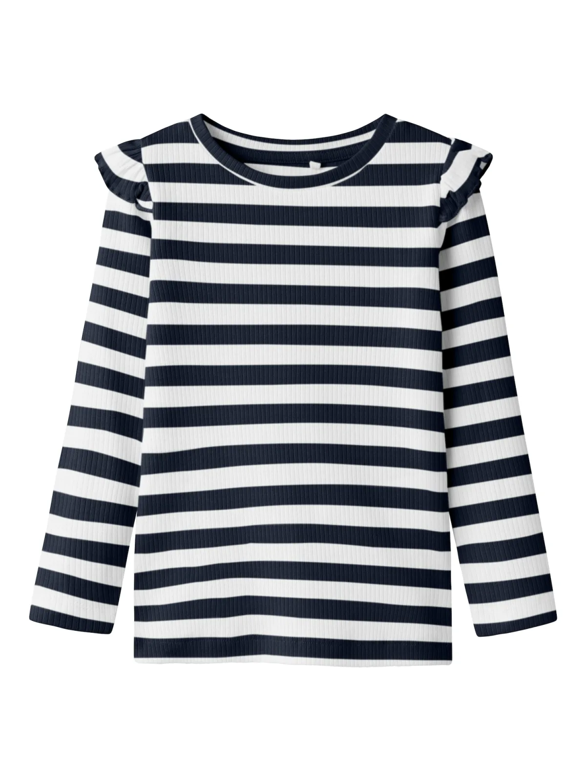 Design: Gevoerde zoom/rand, Nektape; Materiaal: Jersey; Halstype: Ronde hals; Motief: Gestreept; Details: Volant; Extra's: All-over patroon, Voelt zacht aan; Pasvorm: Slanke pasvorm; Armlengte: Lange mouw; Lengte: Normale lengte