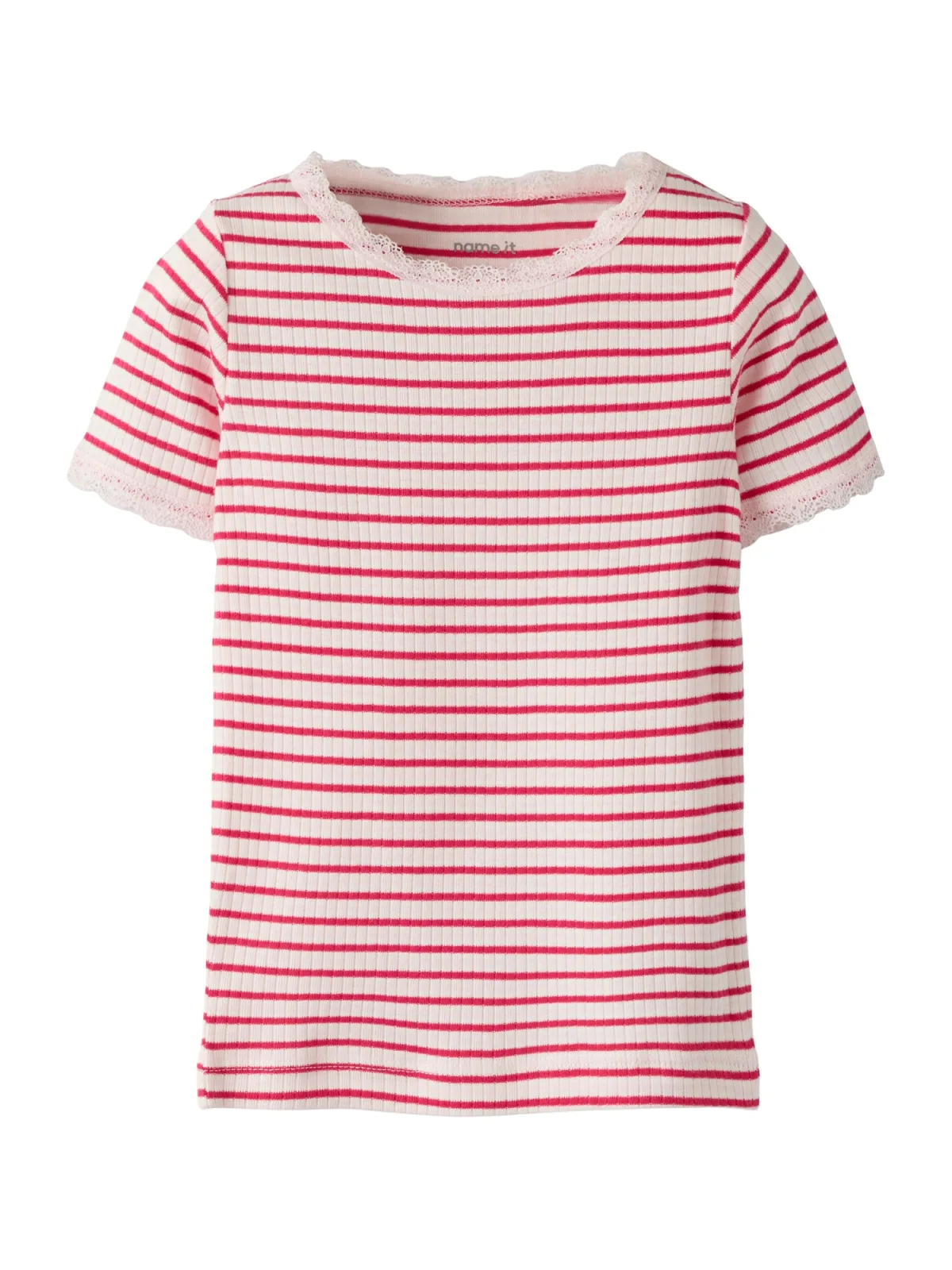 Design: Gevoerde zoom/rand, Geribbeld gebreid; Materiaal: Jersey; Halstype: Ronde hals; Motief: Gestreept; Details: Kant; Extra's: All-over patroon, Voelt zacht aan; Pasvorm: Normale pasvorm; Armlengte: Kwartmouw; Lengte: Normale lengte