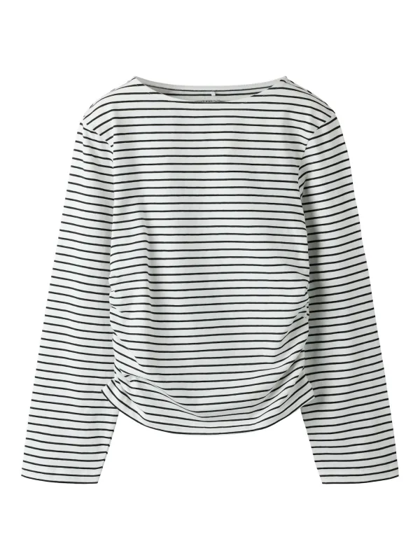 Design: Gevoerde zoom/rand; Materiaal: Jersey; Halstype: Boothals; Motief: Gestreept; Details: Gedrapeerd; Extra's: All-over patroon; Pasvorm: Normale pasvorm; Armlengte: Lange mouw; Lengte: Normale lengte