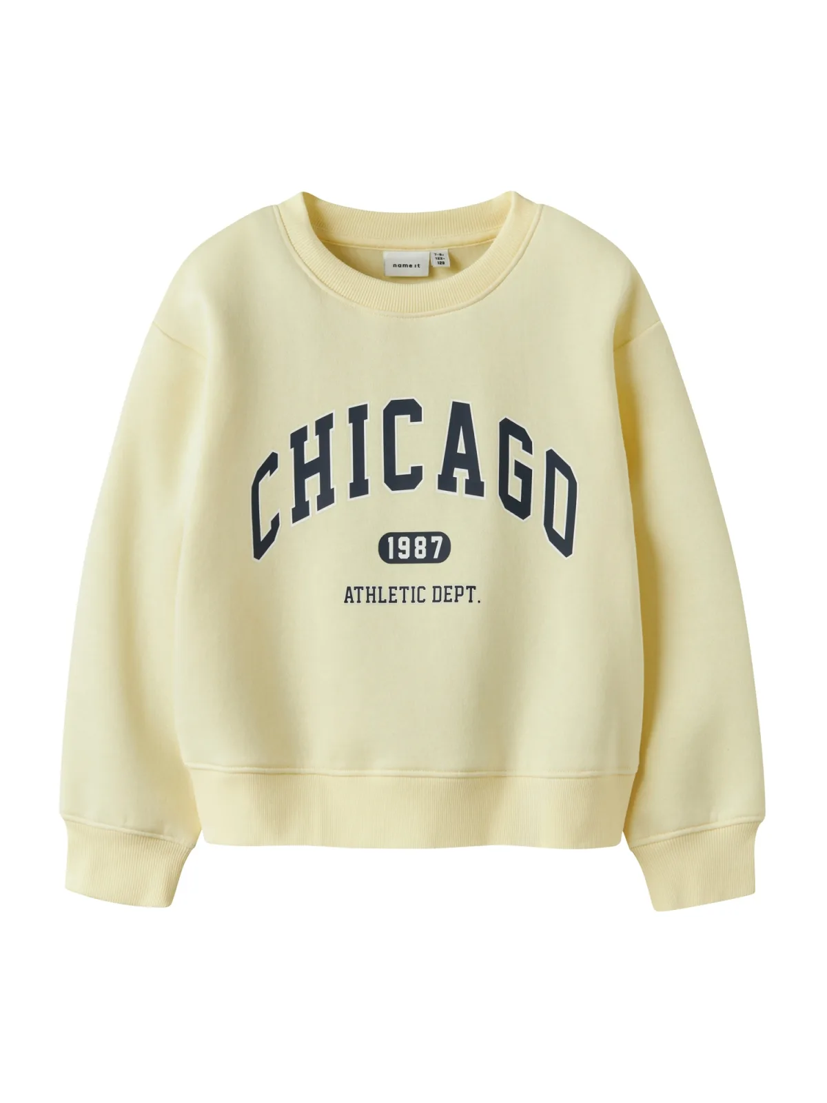 NAME IT Sweatshirt ‘NKFFABIA’ navy / pasteelgeel / wit