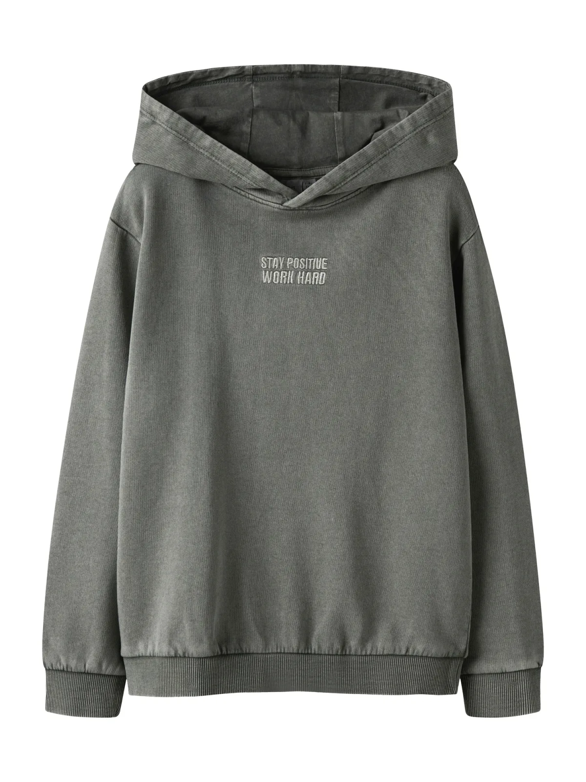 Design: Rechte zoom, Geribd ceintuurtje, Overcut schouder; Materiaal: Sweatstof; Halstype: Capuchon; Motief: Tekst print; Extra's: Op staal naden, Voelt zacht aan; Pasvorm: Normale pasvorm; Armlengte: Lange mouw