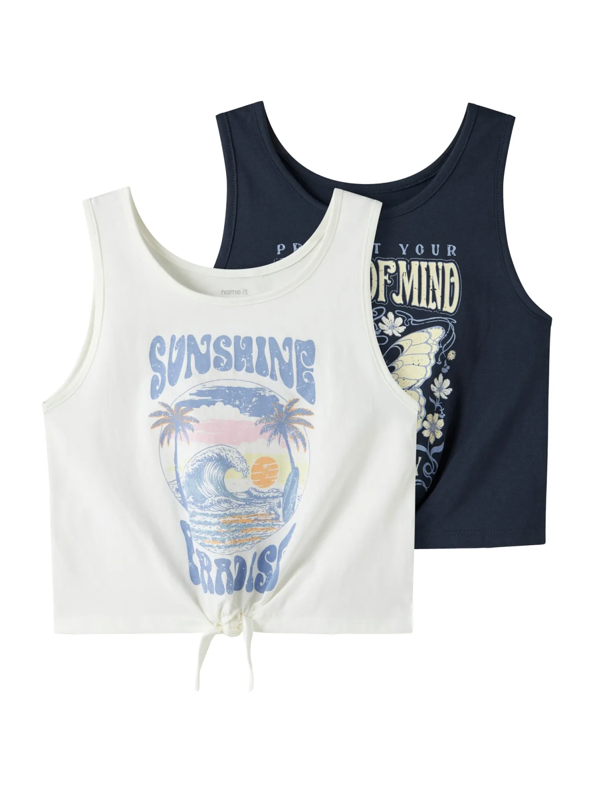 Design: Gevoerde zoom/rand, Om te knopen/binden; Materiaal: Jersey; Halstype: Ronde hals; Motief: Motiefprint; Soort bandjes: Normale bandjes; Extra's: Op staal naden, Voelt zacht aan, Huidvriendelijk materiaal; Pasvorm: Normale pasvorm; Aantal: 2 Pack; Armlengte: Mouwloos; Lengte: Korte pasvorm