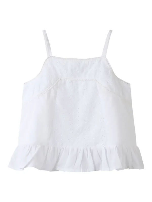 Design: Rechte zoom; Materiaal: Katoen; Halstype: Carréhals; Motief: Effen; Soort bandjes: Spaghettibandjes; Details: Borduursels, Gedrapeerd, Mesh; Extra's: Op staal naden, Voelt zacht aan; Pasvorm: Losse pasvorm; Armlengte: Mouwloos; Lengte: Normale lengte