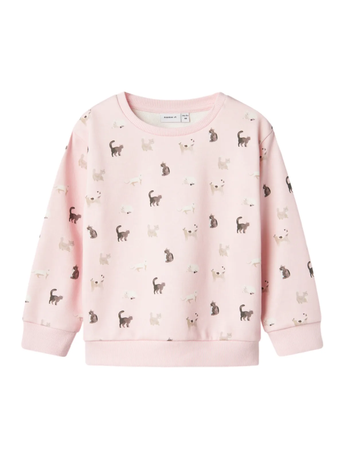 Met deze trui wordt elke dag een beetje knusser en speelser! De grote kattenprint zorgt voor een goede stemming en maakt de look echt bijzonder. De normale pasvorm en lengte bieden je veel bewegingsvrijheid, terwijl de raglanmouwen zorgen voor een casual pasvorm. Dankzij de zachte binnenkant van ongelschoren sweatstof voelt de trui super aangenaam aan op de huid. Rippat de boorden zorgen voor een comfortabel draagcomfort, en een geweven label binnenin maakt het ontwerp stijlvol af. Perfect voor gezellige dagen en hartstikke coole outfits!