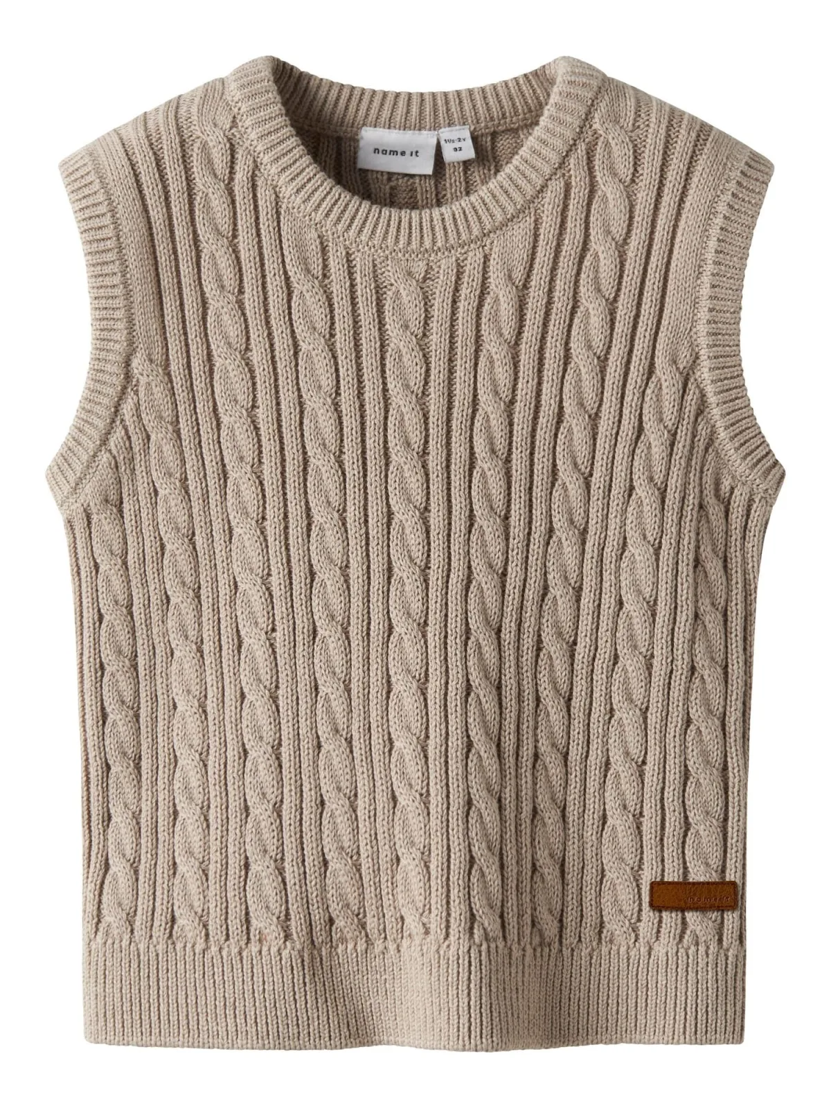 Design: Vlecht brei; Voering: Niet gevoerd; Materiaal: Knitwear; Halstype: Ronde hals; Motief: Effen; Extra’s: Label patch/label flag; Pasvorm: Normale pasvorm; Armlengte: Mouwloos