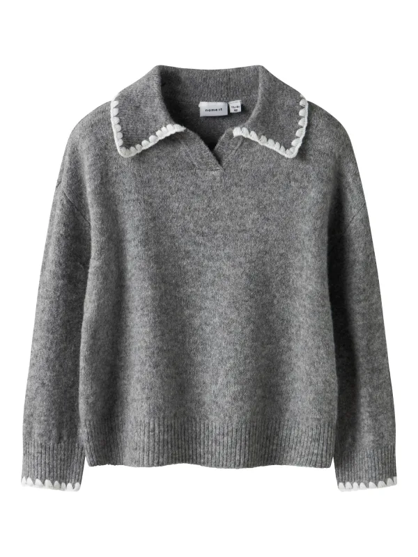 NAME IT Trui grijs gemêleerd / wit