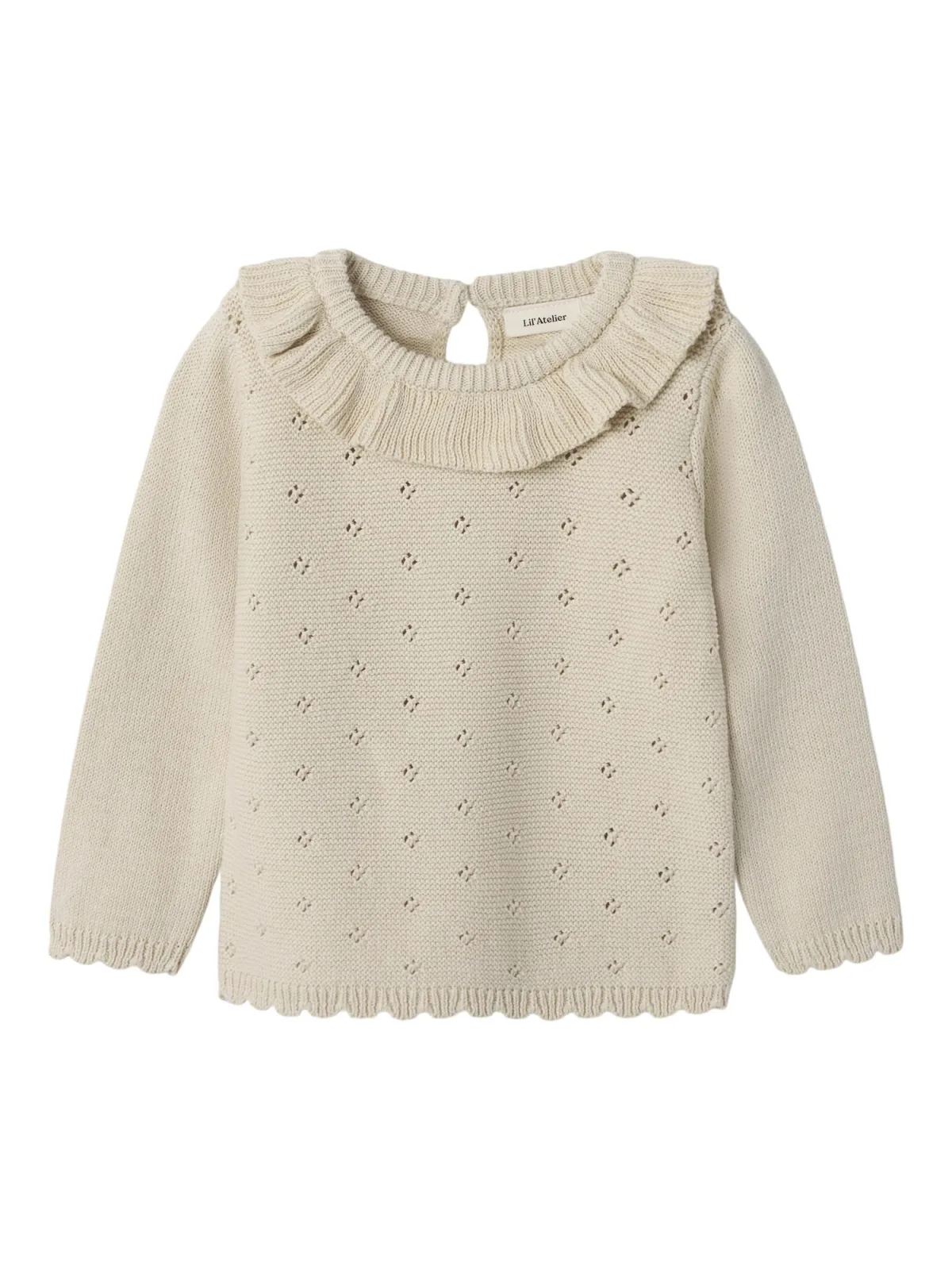 Design: Geribbelde kraag; Type sluiting: Knoopsluiting; Materiaal: Knitwear; Halstype: Ronde hals; Motief: Effen; Details: Cut-outs, Ruches, Mesh; Extra's: Op staal naden; Pasvorm: Normale pasvorm; Armlengte: Lange mouw; Lengte: Normale lengte