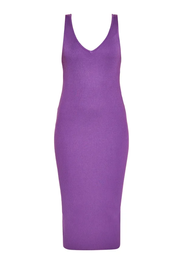 Design: Getailleerd model, Diepe snit/decolleté; Materiaal: Knitwear; Halstype: V-hals; Motief: Effen; Extra's: Op staal naden; Lengte: Knielengte; Pasvorm: Slanke pasvorm; Armlengte: Mouwloos