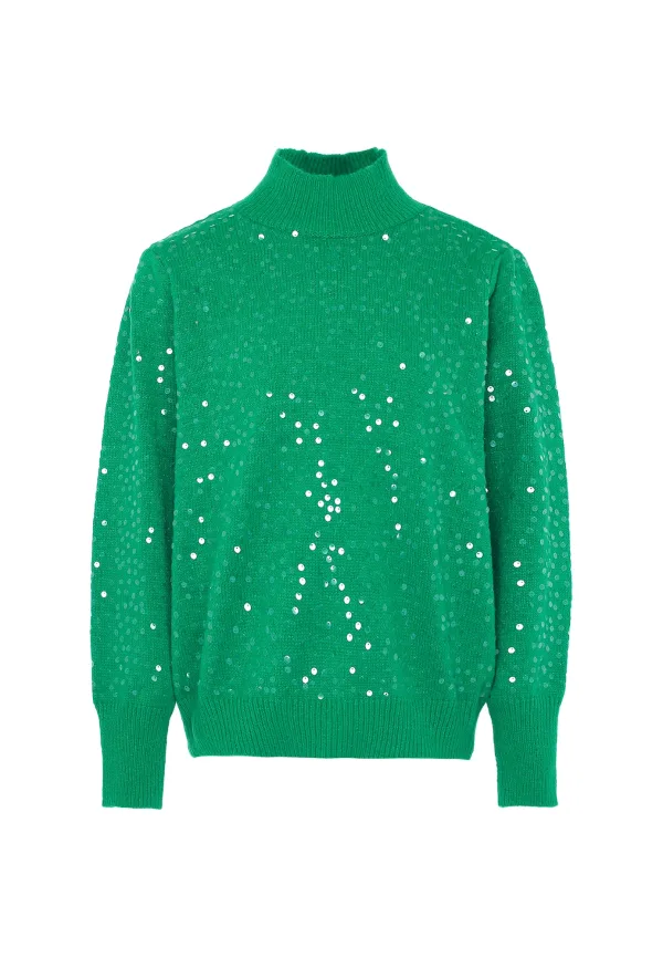 Design: Geribbelde kraag; Materiaal: Knitwear; Halstype: Opstaande kraag; Motief: Effen; Details: Pailletten; Extra's: Fully fashioned; Pasvorm: Normale pasvorm; Armlengte: Lange mouw; Lengte: Normale lengte