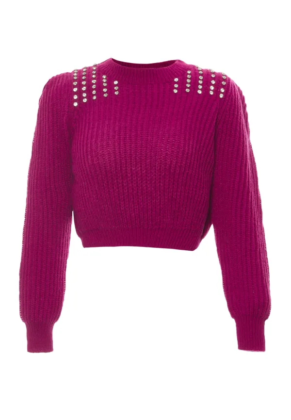 Design: Geribd ceintuurtje, Geribbeld gebreid; Materiaal: Knitwear; Halstype: Ronde hals; Details: Sierstenen; Pasvorm: Normale pasvorm; Armlengte: Lange mouw; Lengte: Korte pasvorm