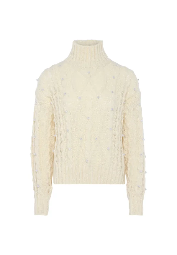 Design: Geribbelde kraag; Halstype: Opstaande kraag; Motief: Effen; Details: Mesh, Parels; Extra's: Fully fashioned; Pasvorm: Normale pasvorm; Armlengte: Lange mouw; Lengte: Normale lengte