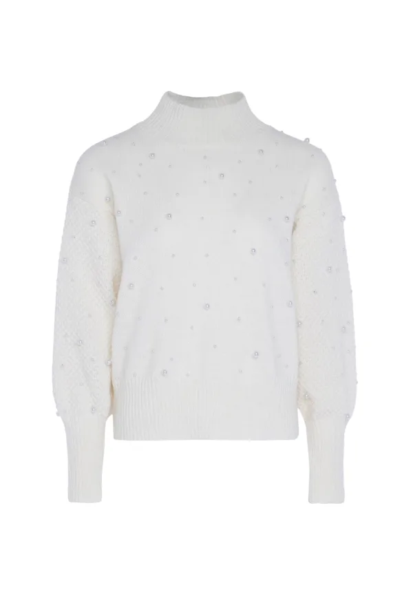 Design: Geribbelde kraag, Geribd ceintuurtje, Overcut schouder; Halstype: Opstaande kraag; Motief: Effen; Details: Parels; Extra's: Fully fashioned, Met textuur; Pasvorm: Normale pasvorm; Armlengte: Lange mouw; Lengte: Normale lengte