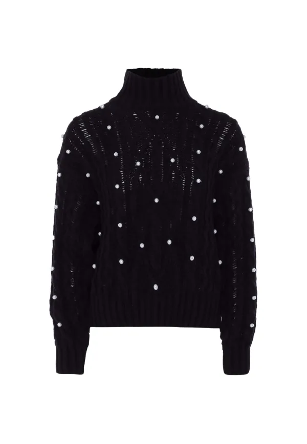 Of het nu gaat om feestelijke evenementen, een diner of gewoon overdag, deze Faina-trui met kralen zal je van dag tot avond vergezellen. Het fijngebreide patroon met kabelpatroon en het zachte garen heeft een geribde opstaande kraag en comfortabele geribde manchetten. Pullover trui