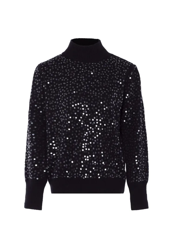 Design: Geribbelde kraag; Materiaal: Knitwear; Halstype: Opstaande kraag; Motief: Effen; Details: Pailletten; Extra's: Applicaties; Pasvorm: Normale pasvorm; Armlengte: Lange mouw; Lengte: Normale lengte