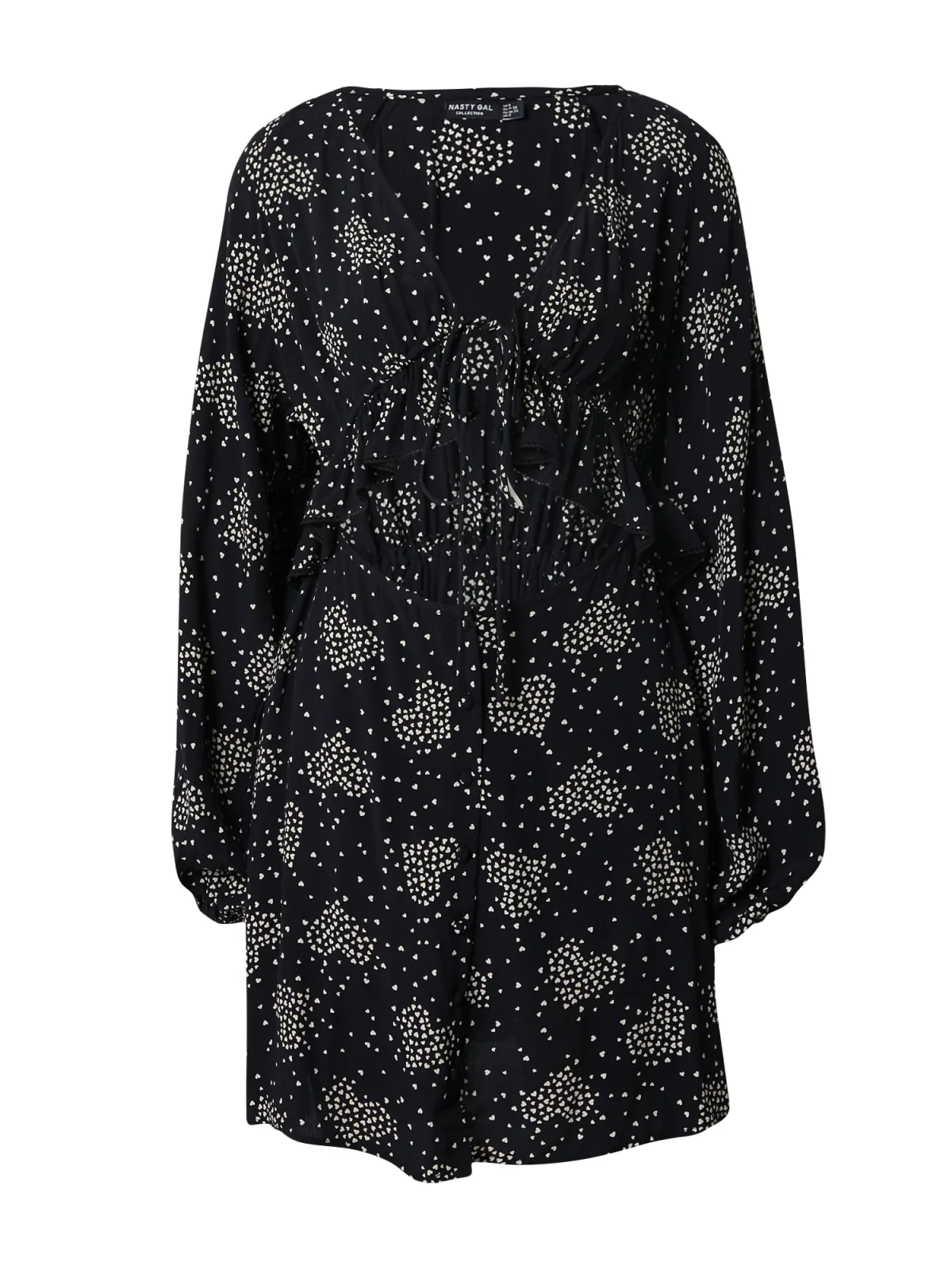 Design: Gevoerde zoom/rand, Elastische taille/zoom, Om te knopen/binden; Type sluiting: Knoopsluiting; Materiaal: Viscose; Halstype: V-hals; Kraag: Zonder kraag; Details: Cut-outs, Volant, Gedrapeerd; Extra's: All-over patroon, Voelt zacht aan; Lengte: Kort/mini; Pasvorm: Normale pasvorm; Armlengte: Lange mouw
