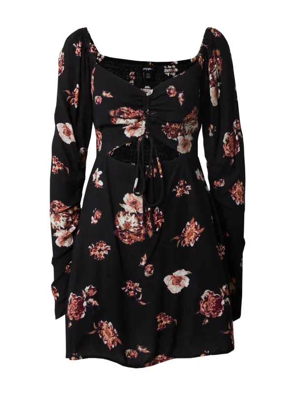 Design: Met band/snoer, Om te knopen/binden, Overige kragen, Elastische inzetstukken; Materiaal: Viscose; Motief: Bloemenprint; Details: Cut-outs, Gedrapeerd; Extra's: All-over patroon, Gladde stof; Lengte: Kort/mini; Pasvorm: Slanke pasvorm; Armlengte: Lange mouw
