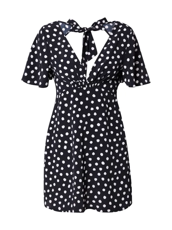 Design: Diepe snit/decolleté, Om te knopen/binden, Elastische inzetstukken; Halstype: V-hals; Motief: Gestippeld; Details: Gedrapeerd, Backless; Extra's: All-over patroon, Op staal naden; Lengte: Kort/mini; Pasvorm: Normale pasvorm; Armlengte: Kwartmouw