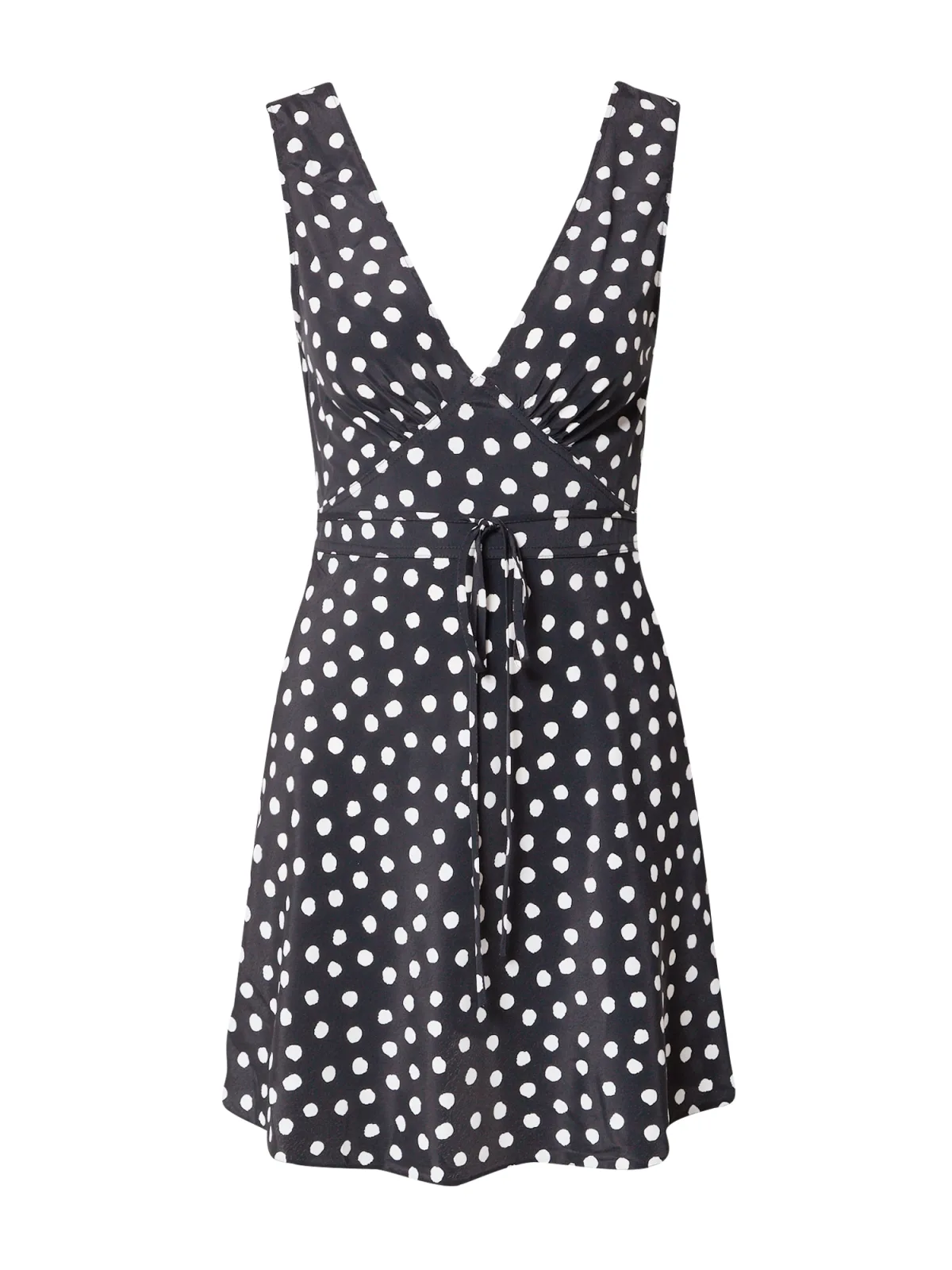 Design: Gevoerde zoom/rand, Om te knopen/binden, Uitgesneden rug; Halstype: V-hals; Motief: Gestippeld; Soort bandjes: Brede bandjes; Details: Gedrapeerd; Extra's: All-over patroon, Gladde stof; Lengte: Kort/mini; Pasvorm: Normale pasvorm; Armlengte: Mouwloos