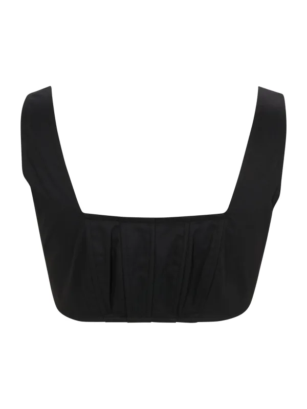 Blouse type: Blouseshirt; Design: Rechte zoom, Rug rits; Type sluiting: Ritssluiting; Materiaal: Katoen; Halstype: Carréhals; Motief: Effen; Kraag: Zonder kraag; Soort bandjes: Brede bandjes; Details: Plooien; Extra's: Op staal naden, Voelt zacht aan; Pasvorm: Slanke pasvorm; Armlengte: Mouwloos; Lengte: Korte pasvorm