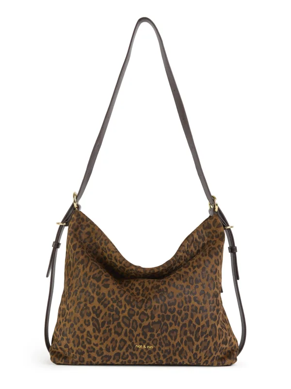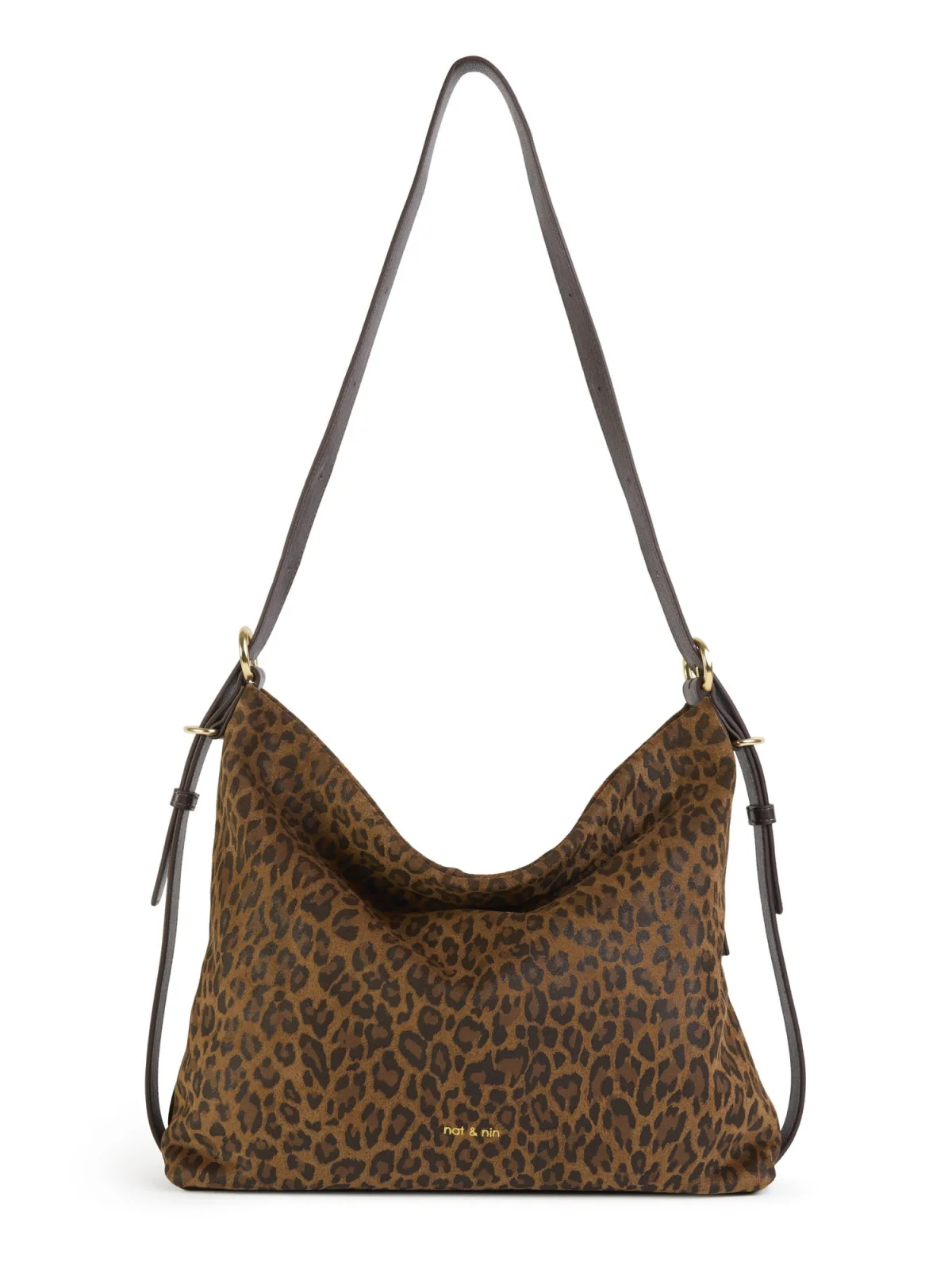 Design: Ruim hoofdvak; Type sluiting: Ritssluiting; Materiaal: Leer; Motief: Dierenprint; Materiaal: Suède; Extra's: Label plaatje, All-over patroon; Maat: Gemiddeld; Hengsellengte: Korte schouderriemen